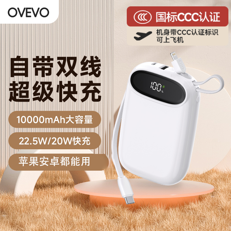 欧雷特 10000mAh 22.5W 自带双线数显双向快充移动电源